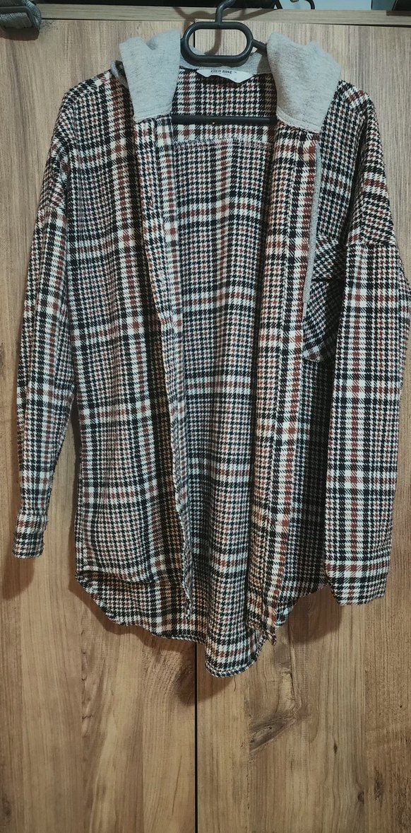 Düğmeli, uzun kollu, bol kesim kadın gömleği. Sentetik kumaştan, rahat ve sokak stiline uygun, koyu kahverengi kareli desende, günlük kullanım için ideal. Resimdeki gibidir göze batan bi sorunu yoktur