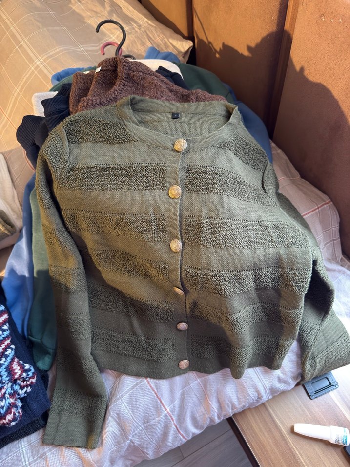 Düğmeli, uzun kollu, yuvarlak yaka kadın hırka. Rahat kesim, midi boy ve gri tonlarında, günlük sokak stili için uygun.