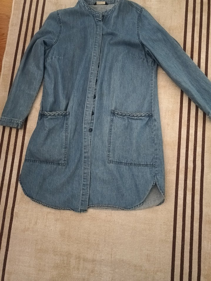 Düğmeli Uzun Kollu Kadın Kot Ceket