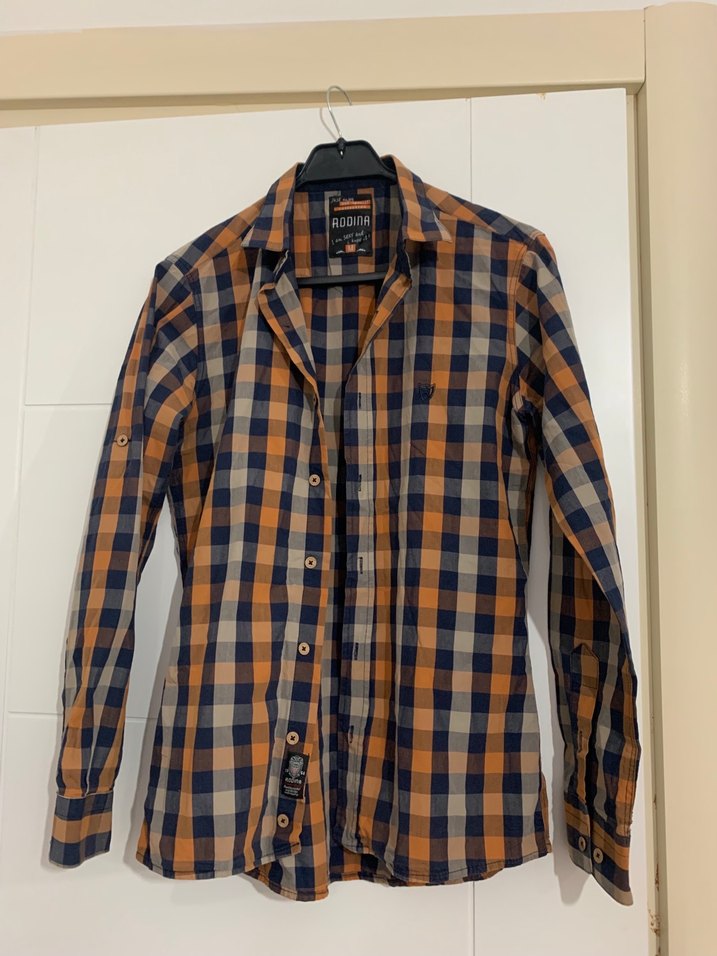 Düğmeli, uzun kollu, yakalı ve normal boyda olan bu erkek gömlek, kahverengi ekose deseni ve sentetik kumaşıyla günlük rahat kullanıma uygundur.