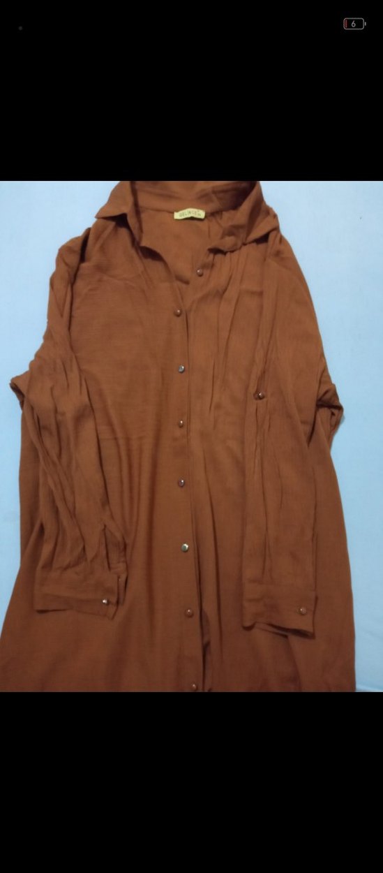 Düğmeli Uzun Kollu Kahverengi gömlek tunik