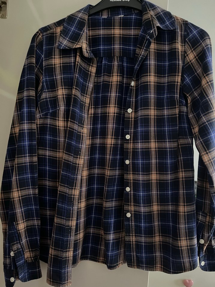 Düğmeli önü, uzun kollu ve yakalı bu kahverengi kadın gömleği, pamuk kumaştan üretilmiş olup rahat kesimi ve günlük kullanıma uygun tarzıyla dikkat çeker.