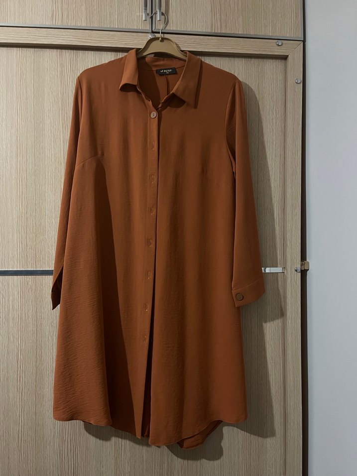 Düğmeli Uzun Kollu Kahverengi Kadın Tunik