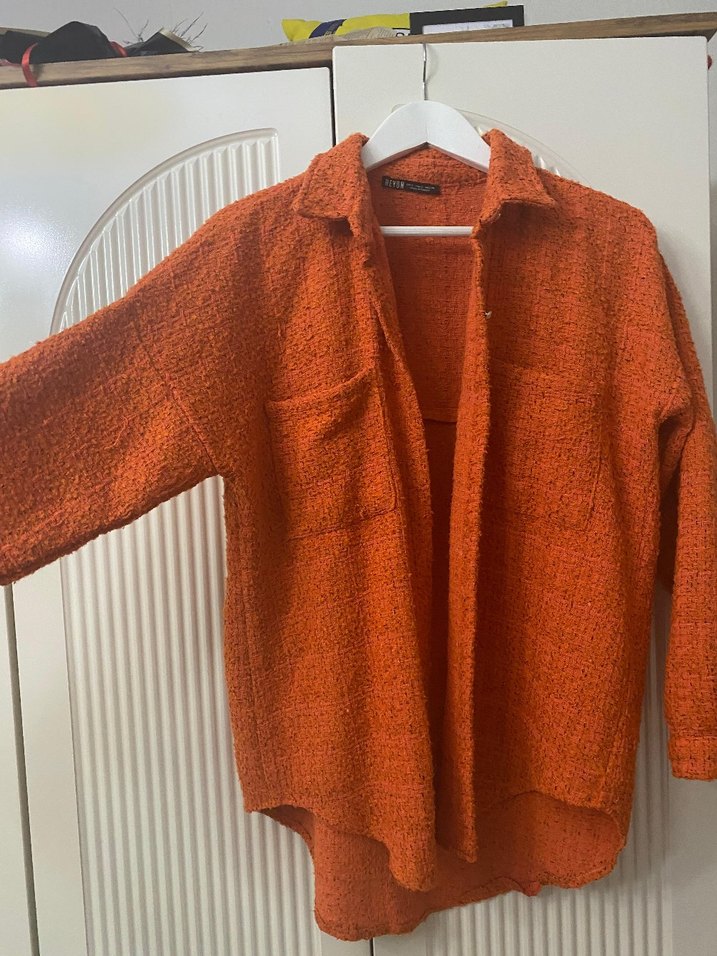 Düğmeli, uzun kollu kahverengi yün gömlek, rahat kesim ve normal boyda. Notlu yaka detayıyla şık ve rahat bir görünüm sağlar. ✨