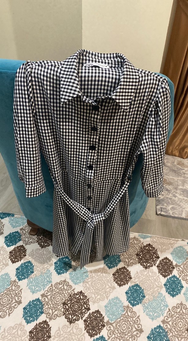 Gri kareli bluzu, uzun kollu, yakalı ve düğmeli, belden bağlamalıdır. Günlük kullanıma uygun, rahat ve şık bir sokak stili sunar. Kıza elbise olarakta kullanılabilir uzunluk omuzdan 86 cm iki kol arası 46 cm kol uzunlugu 42 cm