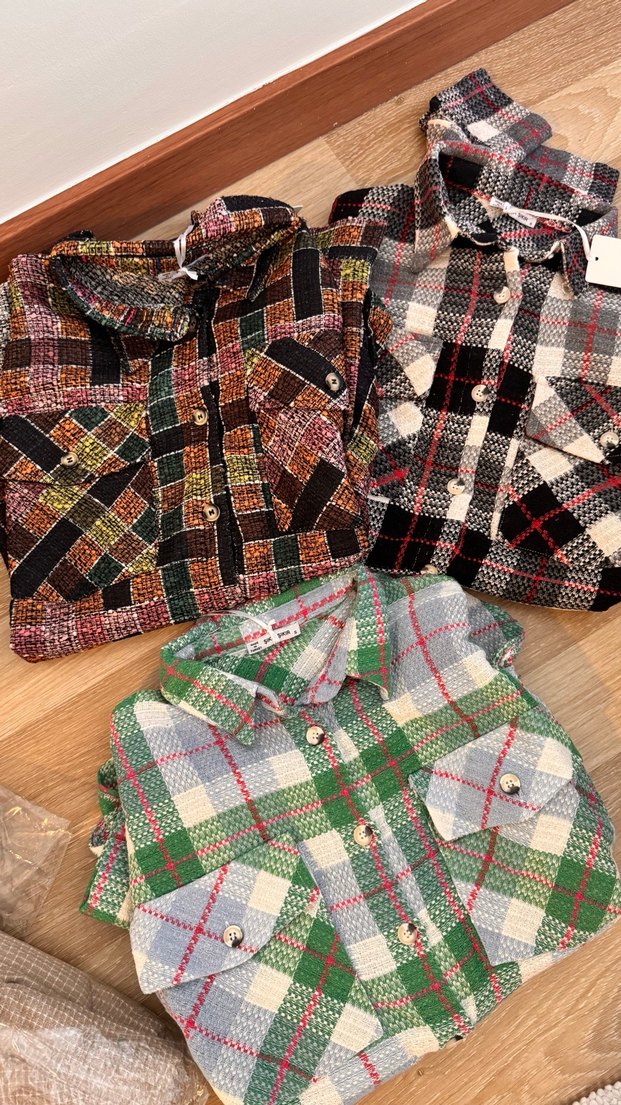 Bol kesim, uzun kollu, yakası kesimli ve düğmeli önü ile çok renkli koyu kareli desenli gömlekler. Sokak tarzını yansıtan cep detayları günlük kullanıma uygundur.