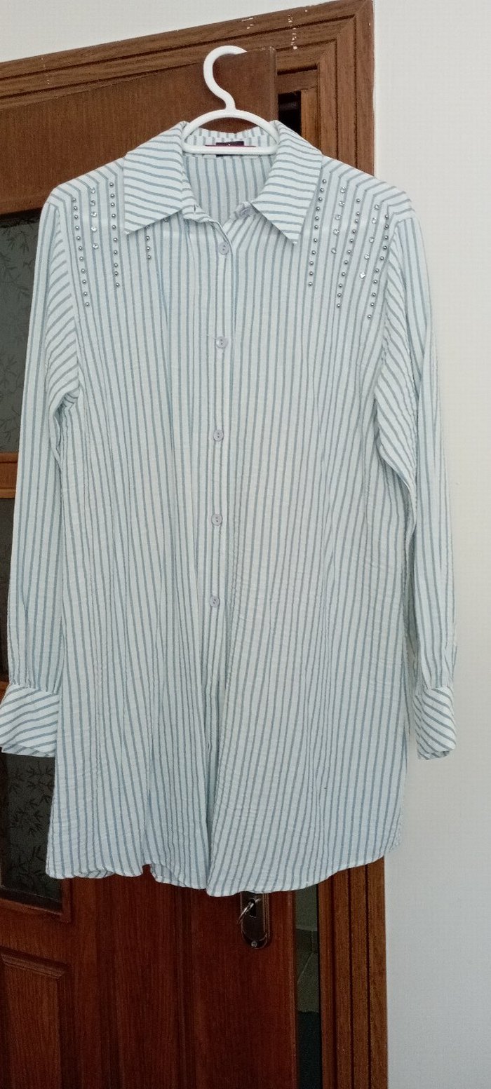 Düğmeli, uzun kollu beyaz keten gömlek, regular fit ve bohem tarzıyla günlük kullanıma uygun.1bedendir 40-42 uyumlu