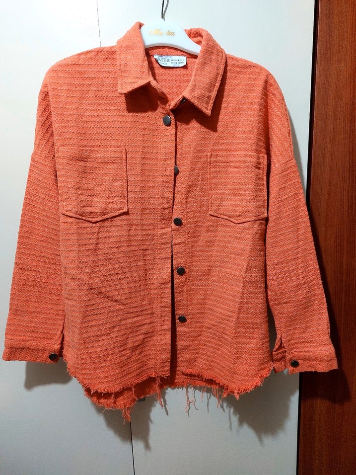 Düğmeli, uzun kollu, keten kumaştan yapılmış kahverengi mini gömlek. İki ön cep ve kesik yakası bulunur, rahat ve günlük kullanıma uygundur. s m bedene olur