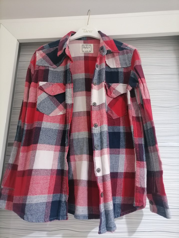 Düğmeli, uzun kollu, notched lapel yaka ve kırmızı-gri ekose desenli, rahat kesim tekstil kumaştan gömlek, günlük sokak stiline uygun. Bol kesim 36 38 bedene de uygundur.