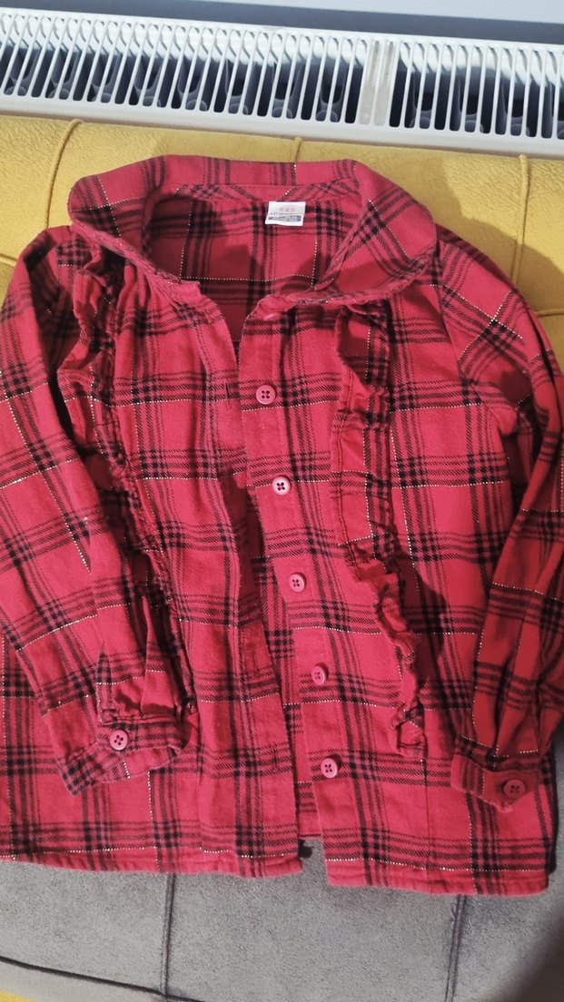 Düğmeli, uzun kollu ve Yumuşak keten kumaştan, parlak kırmızı renkte ve rahat kız çocuk gömlek