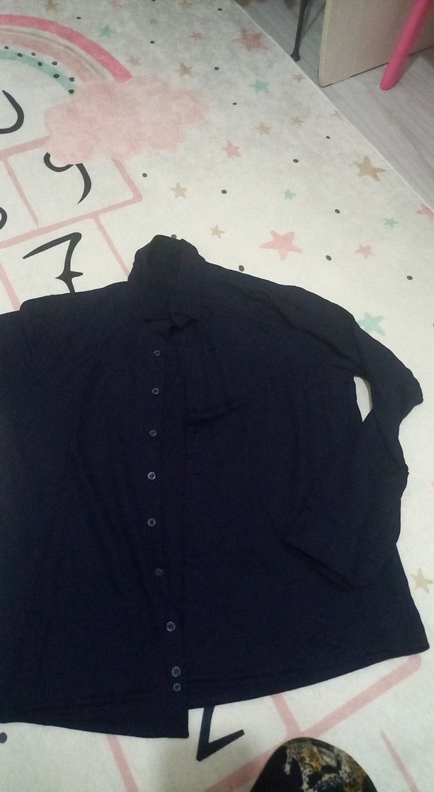 Düğmeli, Uzun Kollu Lacivert Gömlek