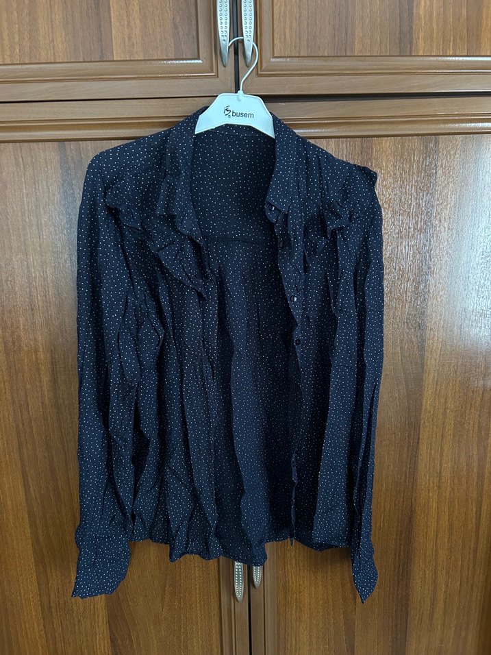 Düğmeli Uzun Kollu Lacivert Kadın Gömlek