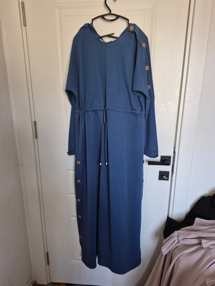 Ürün 3 4 defa giyildi. sadece bir tarafında omuz kısmında bir düğmesi eksik. Şal veya eşarpla belli olmuyor. Başka defosu yok. Belinden büzgülü olduğu için çoğu bedene uyum sağlayacak bir elbise