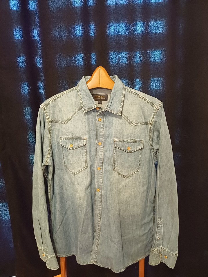 Düğmeli, uzun kollu mavi denim gömlek, notched lapel yaka ve tie-dye desenlidir. Normal uzunlukta ve regular fit, günlük rahat kullanım için uygundur.