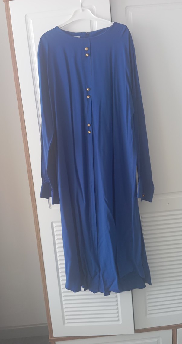 Düğmeli Uzun Kollu Mavi Kadın Tunik