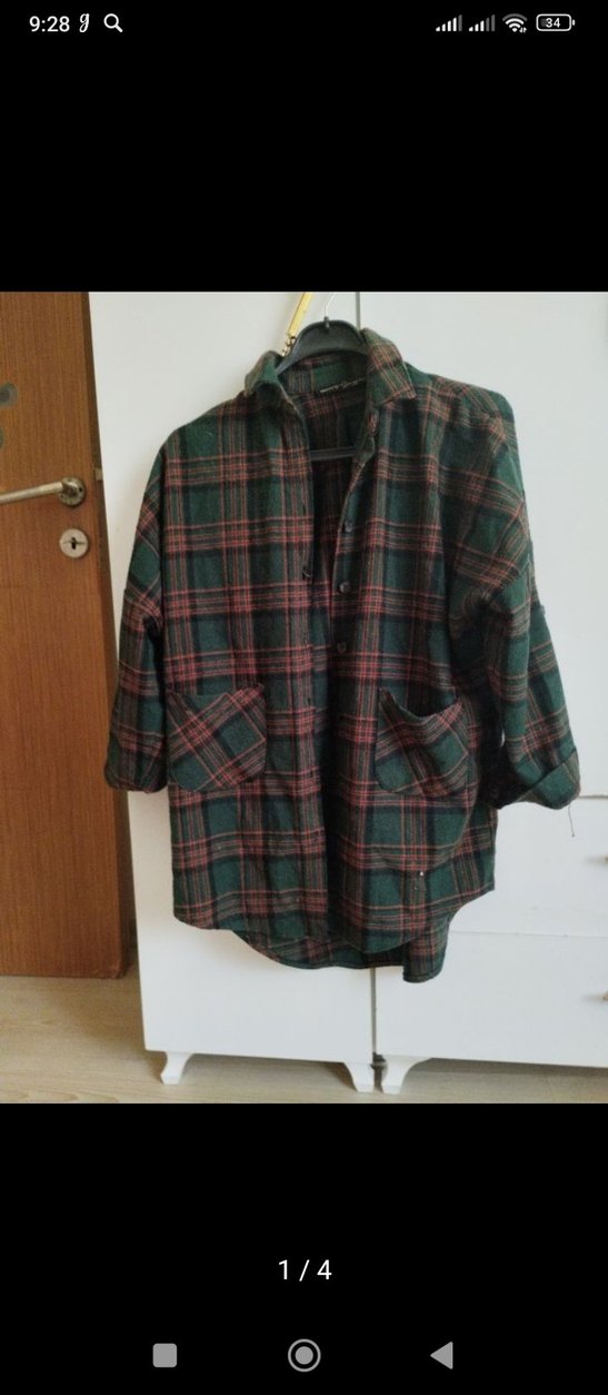 Düğmeli, uzun kollu, notched lapel yakalı kahverengi bol kesim gömlek. Önünde iki cep bulunur. Rahat sokak stili, günlük kullanım için uygun.
