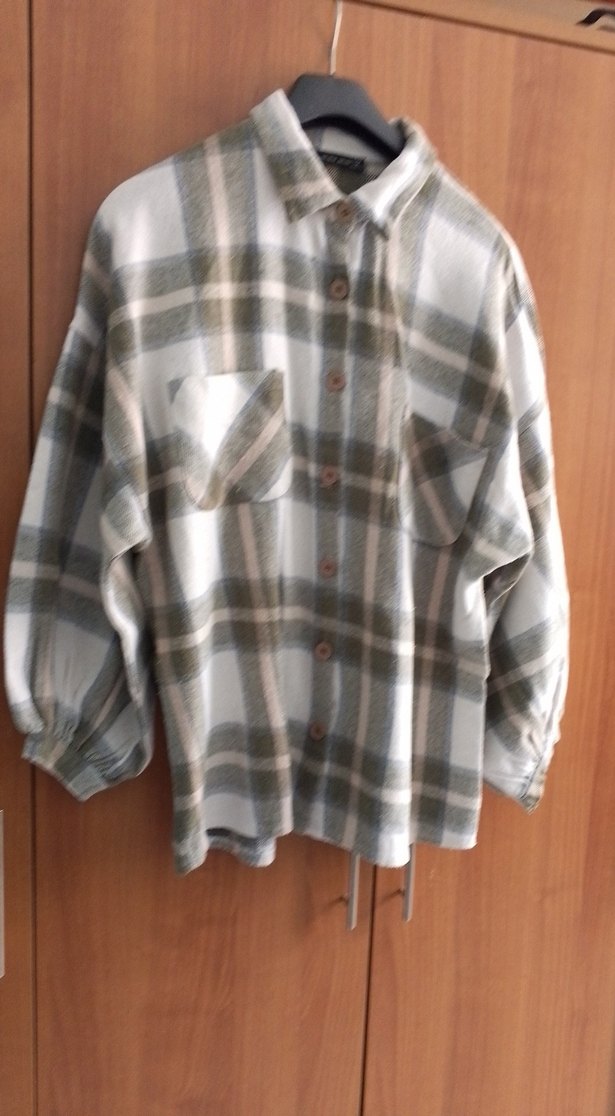 Bej ve gri renklerde, düğmeli, uzun kollu ve yakalı pamuklu gömlek. Rahat kesimiyle konforlu ve sokak stiline uygun. bel 56cm boy 70cm
