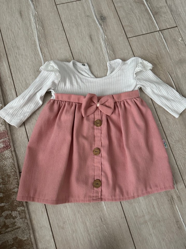 Düğmeli Uzun Kollu Pembe Kız Elbisesi