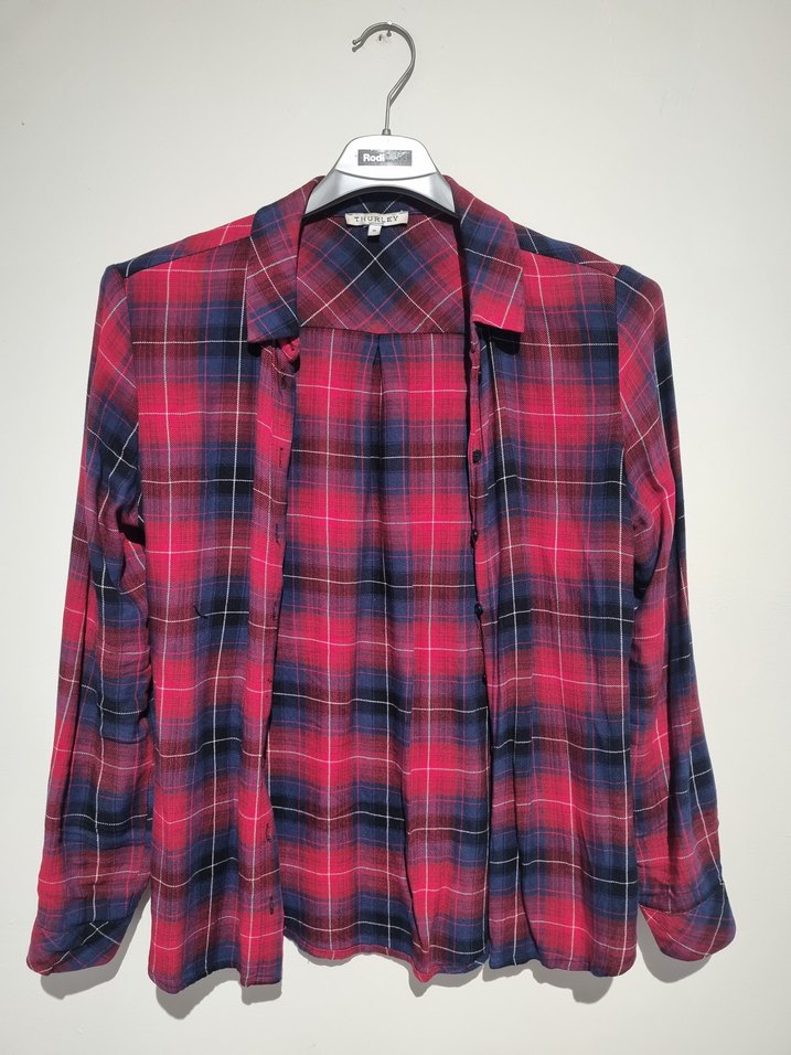 Yumuşak sentetik kumaştan, düğmeli, uzun kollu, yakalı ve renkli batik desenli salaş kadın gömlek. Günlük rahat stil için uygundur.