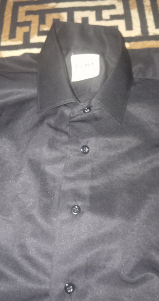 etiketi düşmüş ama hiç giyilmemiş yepyeni Düğmeli, uzun kollu siyah erkek gömlek, parlak kumaştan, regular fit, ofis ve gotik tarz için uygun. Yaka tipi çentikli yakadır.