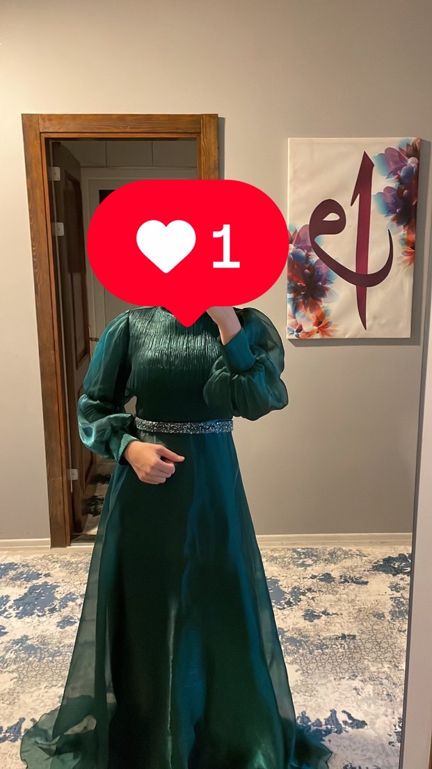 Düğmeli Uzun Kollu Yeşil Gotik Abiye Elbise