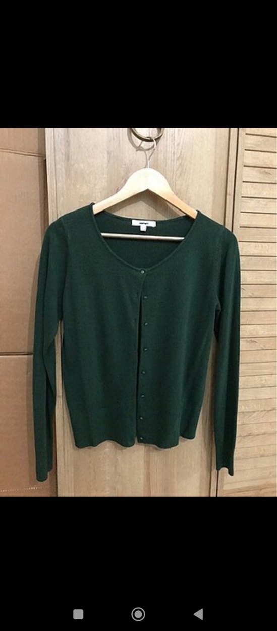 Fitted kesim, koyu yeşil yün hırka, uzun kollu ve yuvarlak yaka. Düğmeli ve normal midi boydadır, günlük kullanıma uygundur.