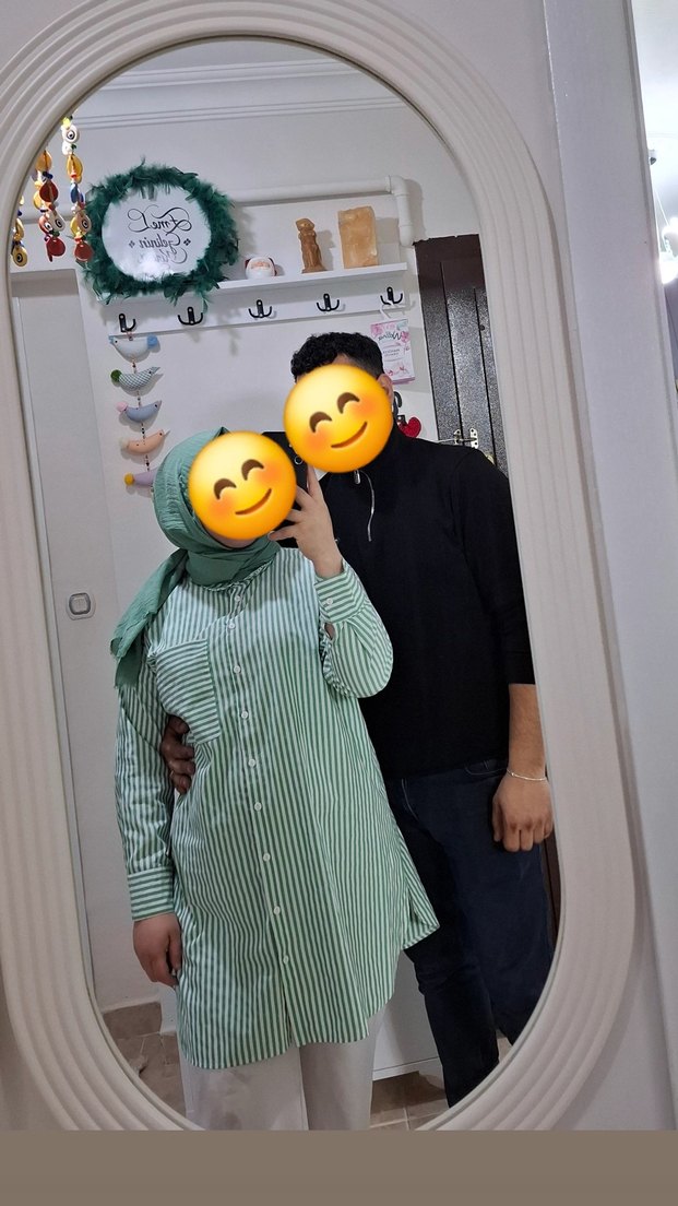 (İstenilirse şalda satilir)Açık yeşil renkli, düğmeli ve uzun kollu hamile tunik. Yüksek yakalı, normal kesim ve baskılı desene sahip, günlük sokak stili için uygun.