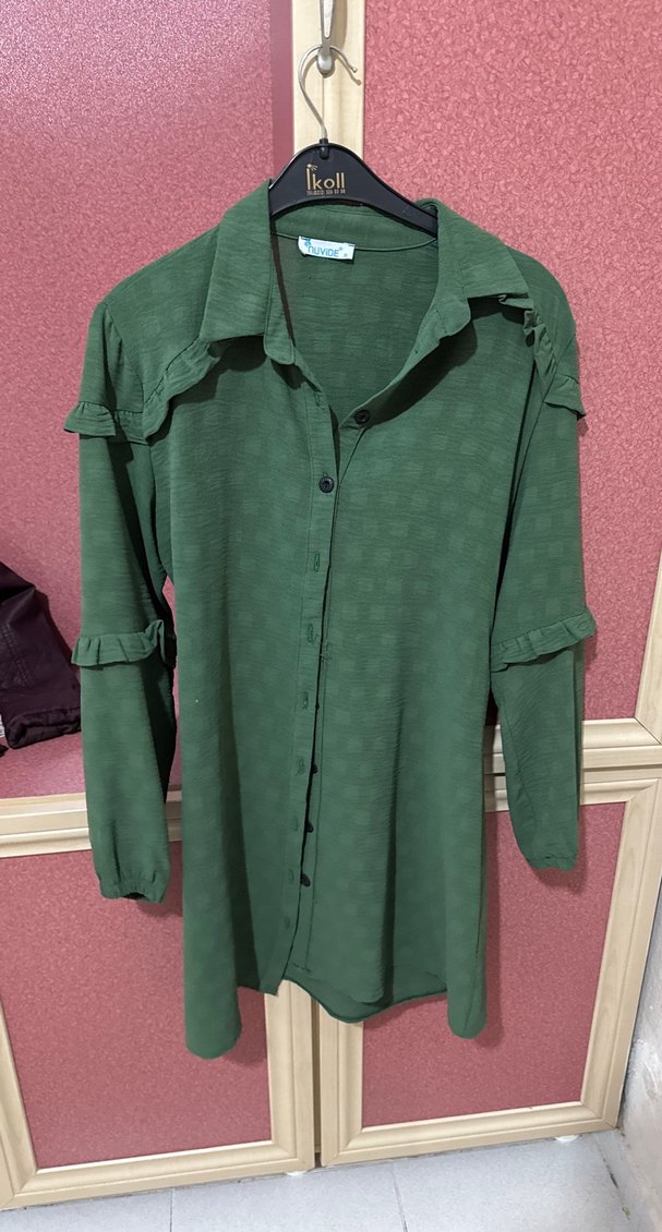 Fiyat 250 teklif vermeden almayın Düğmeli Uzun Kollu Yeşil Tunik