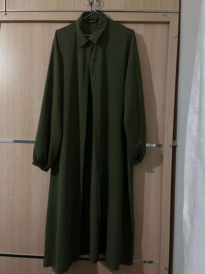 Düğmeli Uzun Koyu Haki Kadın tunik