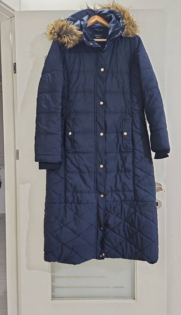 Düğmeli, uzun lacivert kadın kışlık mont, notched lapel yaka ve uzun kolludur. Rahat kalıp ve sentetik kumaş ile günlük kullanıma uygundur. ❄️ çok uzun yıllar önce aldım hâlâ taş gibi sapasağlam düğme yerlerinde çizik var yalnızca. Beden olarak 44 yazıyor ama kalıbı dar 42 bedene daha iyi olur. Çift fermuarlı. Çok çok sıcak tutuyor.