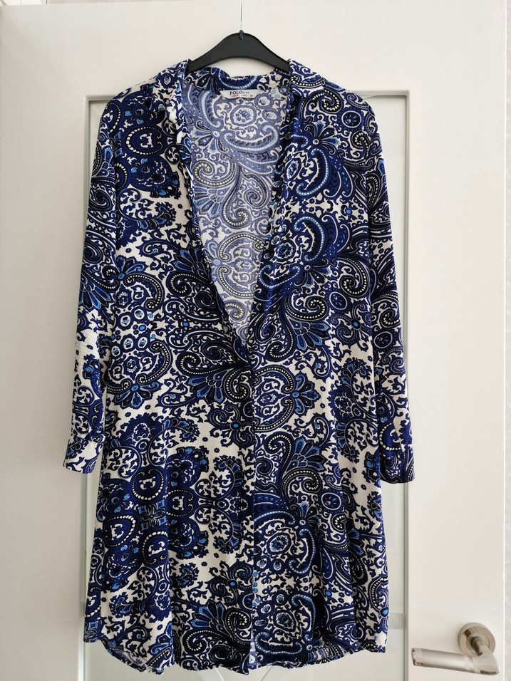 Düğmeli, uzun kollu, tunik Koyu mavi bohem batik deseniyle yumuşak viskon kumaştan, birkaç kez giyildi kusursuz