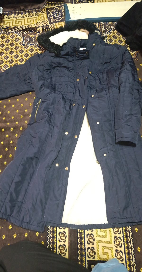 Düğmeli, uzun kesim, mavi kadın kışlık mont. Sentetik kumaştan, yakası kesik ve dar kesimdir. Sokak stili ve rahat kullanıma uygundur. ❄️