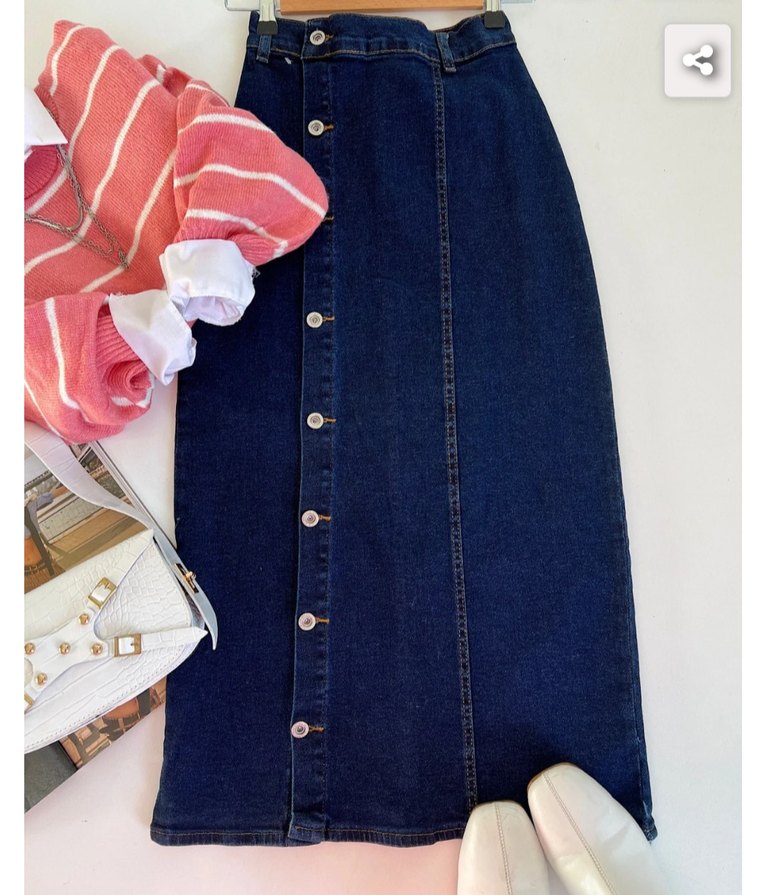 Düğmeli uzun mavi kot etek, rahat sokak stili için uygun, sade ve desen içermeyen tasarıma sahiptir.