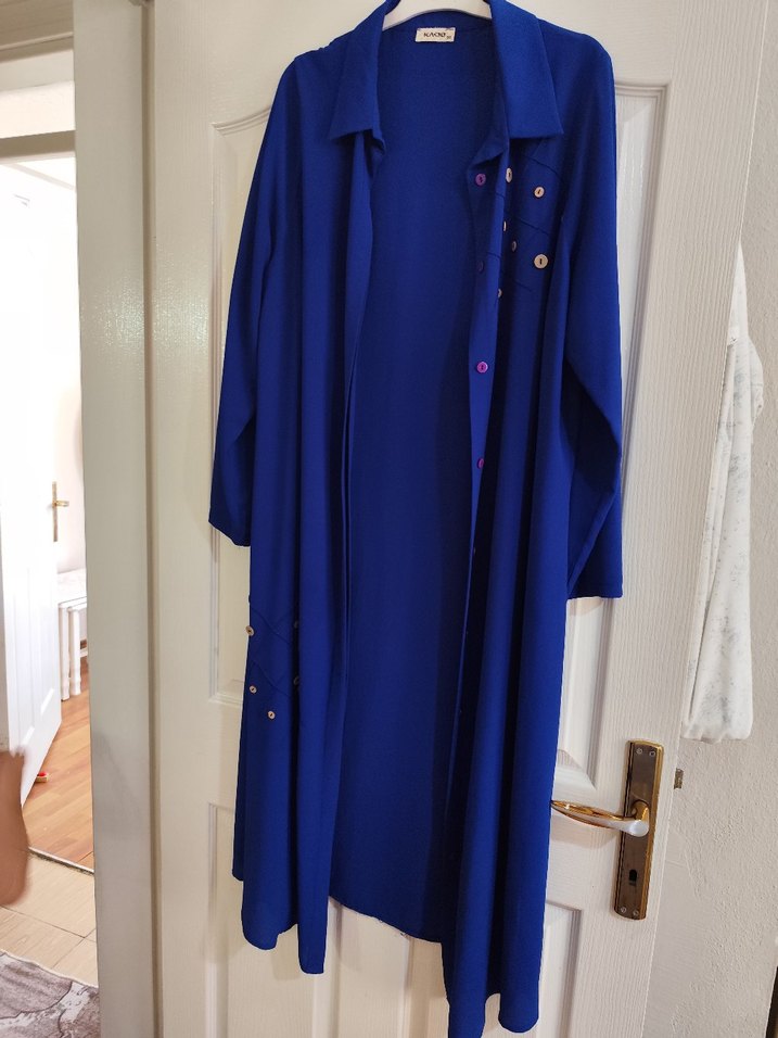 Düğmeli, uzun kesim, koyu mavi ,tunik ipeksi kumaştan ve notched yakalıdır. Rahat ve normcore Paris tarzıyla günlük kullanıma uygundur.