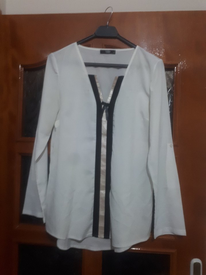 Düğmeli ve V yaka detaylı, uzun kollu kadın gömleği. Normal midi boyda, regular kesim, beyaz ve gri tonlarında, ofis ve günlük şıklık için uygun. ✨