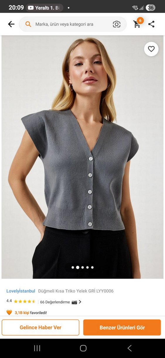 Kadınlar için V yaka ve düğmeli ön kısmı olan, yumuşak triko kumaştan gri renkte kısa yelek. Salaş, normal boy ve kolsuz tasarım, günlük ve ofis kullanımı için uygundur. 1 kez kullanildi s,m uyumlu