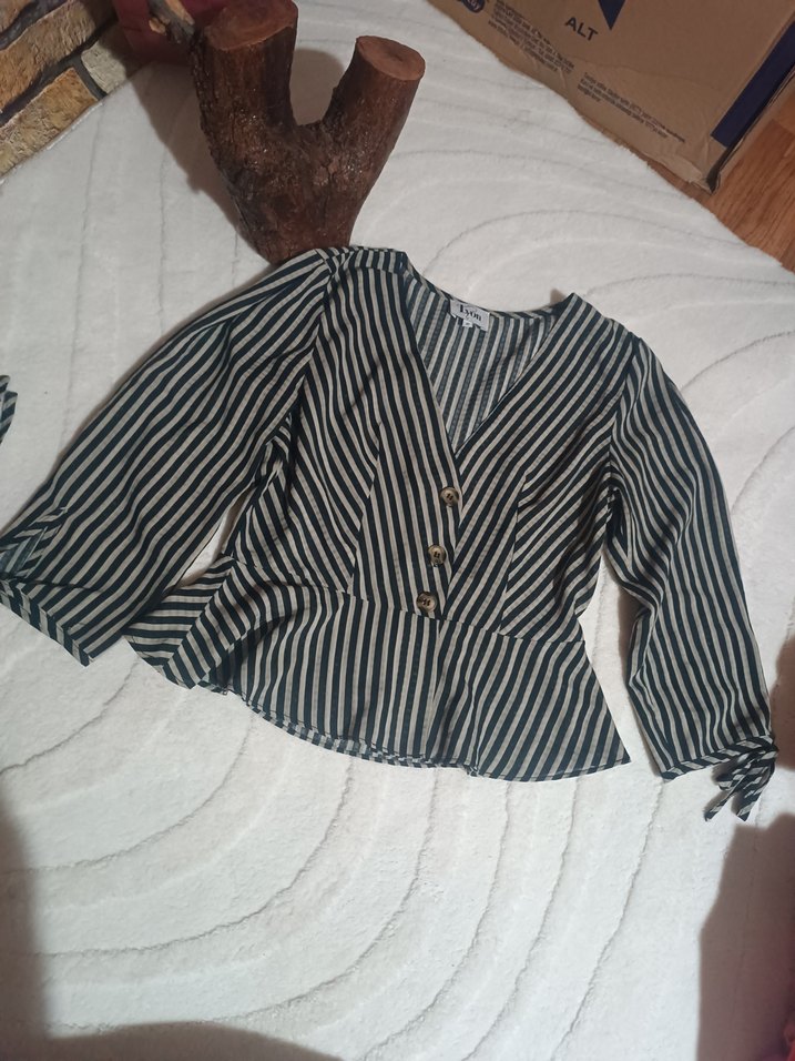 Düğmeli V Yaka Gri Zebra Desenli Bluz Avustralya'dan(Çin Malı) - Görsel 1