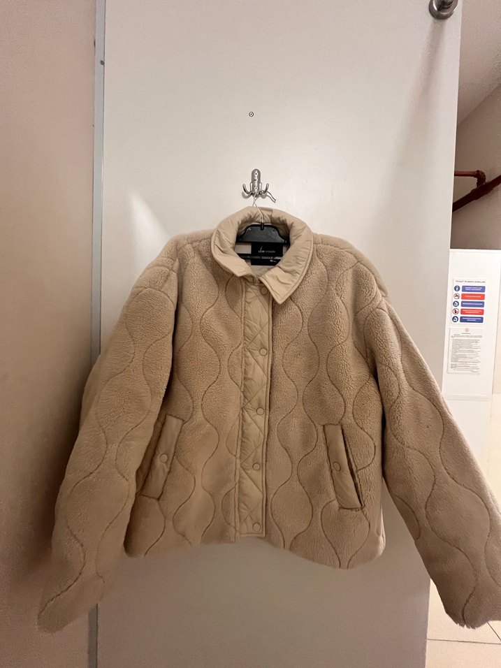 Düğmeli V Yaka Kadın Kışlık Bej mont peluş