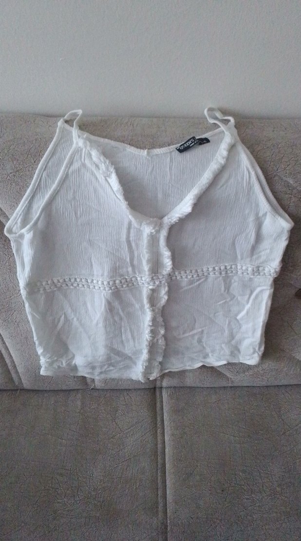 Düğmeli V Yaka Keten Mini Beyaz Atlet