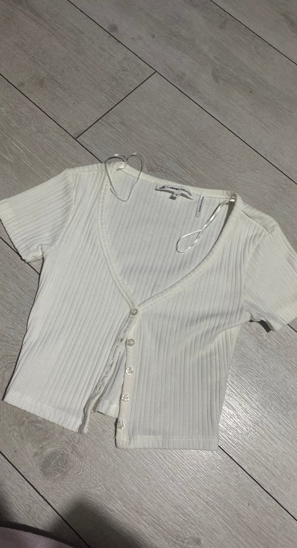 Düğmeli V Yaka Kısa Kollu Beyaz crop