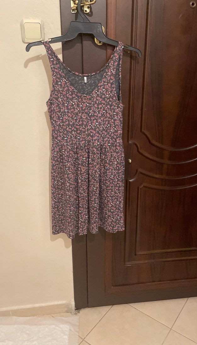 Düğmeli V Yaka Kolsuz Mini Elbise small beden
