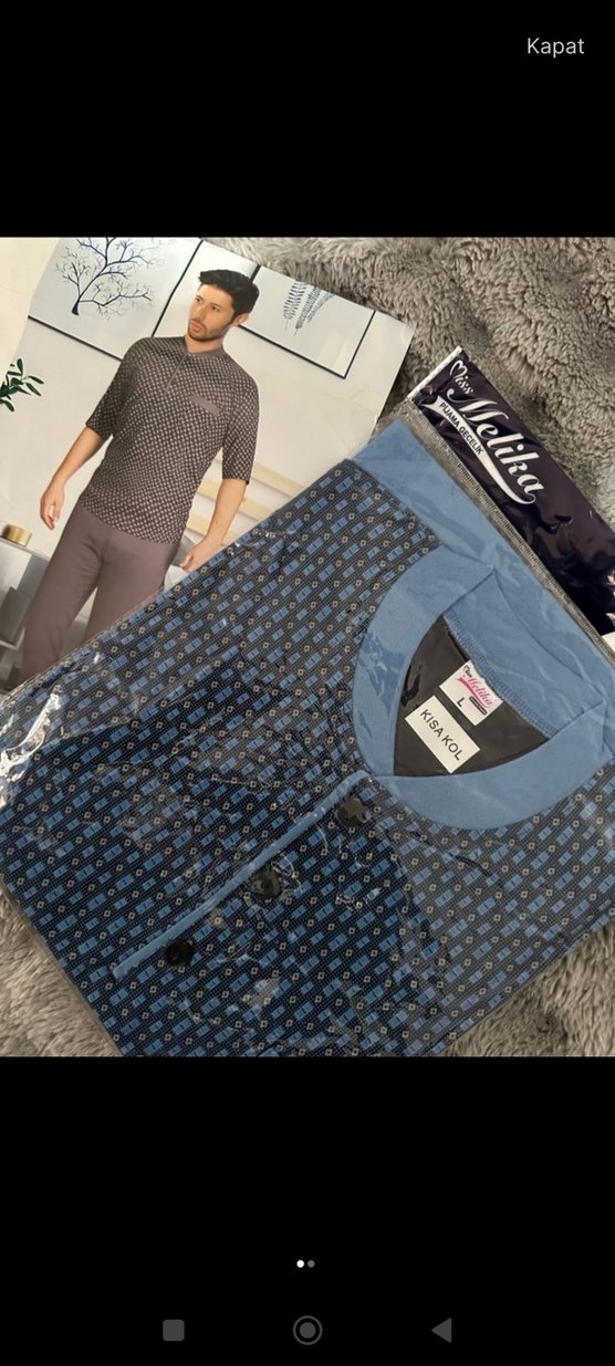 Düğmeli, V yakalı ve kisa kollu erkek pijama takımı. mavi renkli baskılı deseniyle rahat ve şık bir görünüm sunar. m ve xl bedeninde mevcuttur