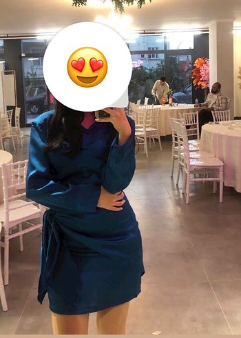 Sadece bir kez giyildi ama elbisenin arka kısmında ütü izi oldu bağlamalı olduğu için elbisenin o görüntüsünü kapatıyor.