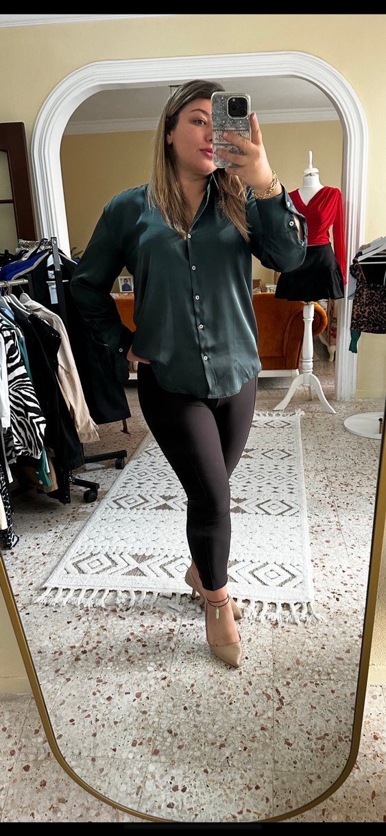 Düğmeli V Yaka Saten Gömlek