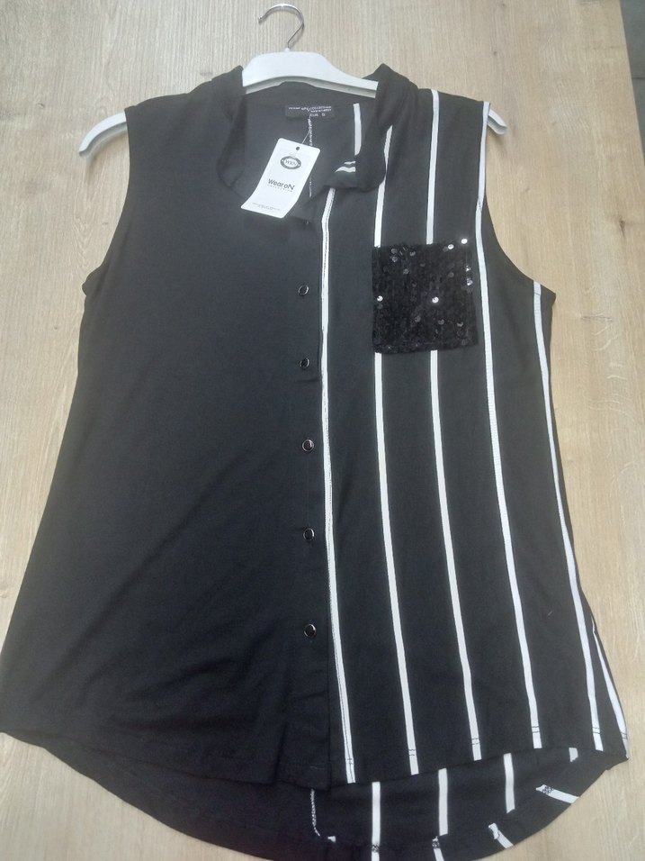 Kolsuz, V yakalı siyah gömlek, düğmeli ve gevşek kesimdir. Tek yan beyaz çizgili ve payetli cep detayına sahiptir, rahat sokak stiline uygundur. s m .xl.2xl bedenleri mevcuttur efendim