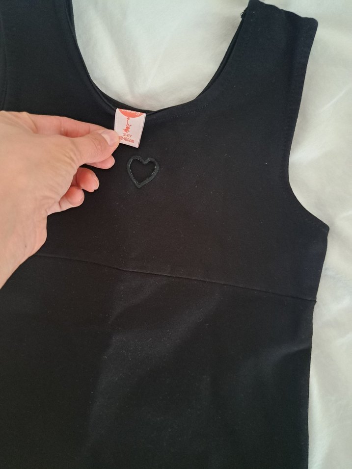 Düğmeli, V yakalı ve kolsuz siyah hamile üstü. Minimalist tarzda, normal midi boyunda, sentetik kumaştan üretilmiştir.