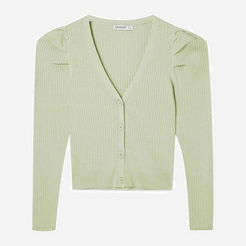 Düğmeli V Yaka Su Yeşili Kadın Hırka
