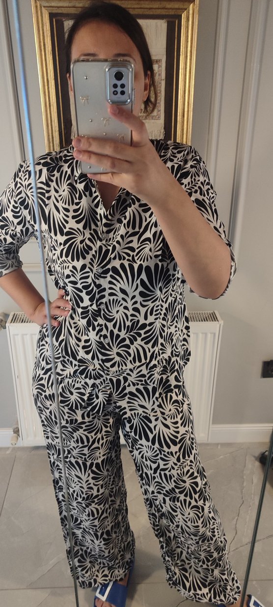 desenli takım üstü gömlekli yarım fakir kol düğme detay. s m L bedene uyumlu