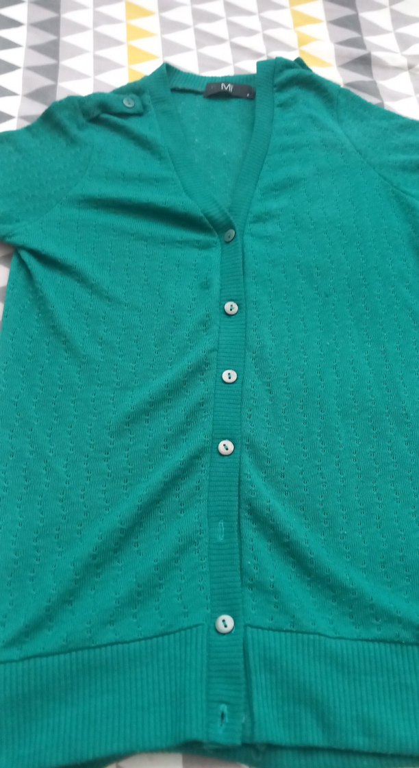 Yeşil kadın hırka, düğmeli uzun kollu bazı yerlerinde siyah lekeler var bir düğmesi eksik bakıp alım yapılsın
