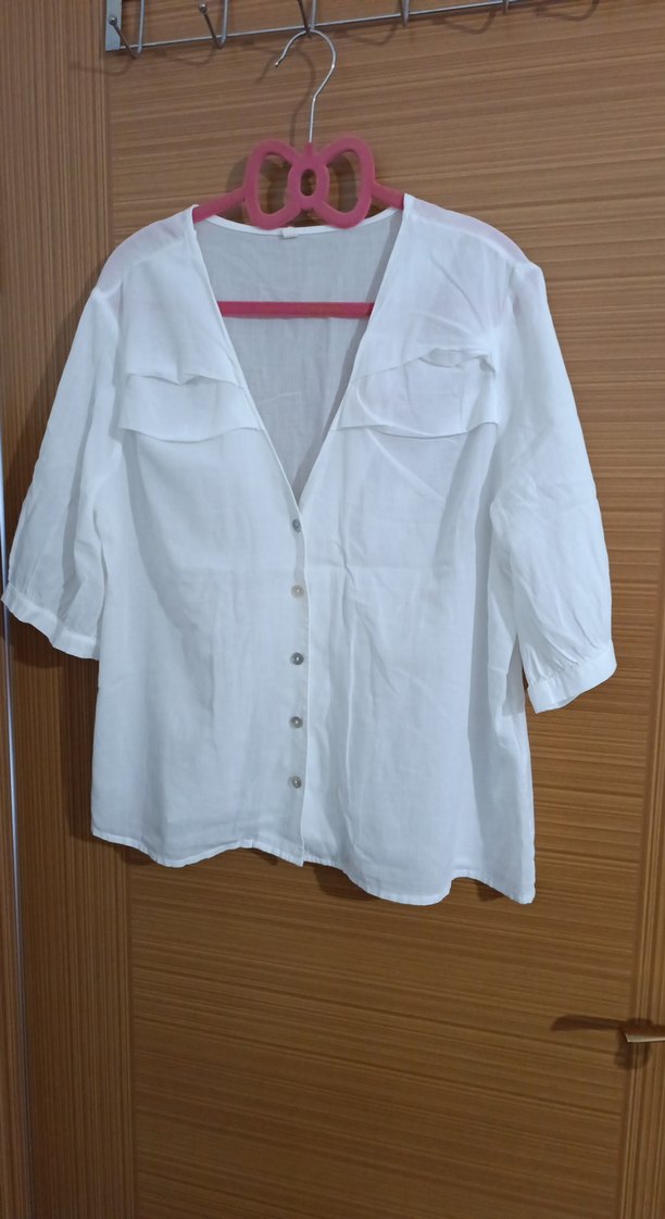 Düğmeli V Yakalı Beyaz Kadın Gömlek